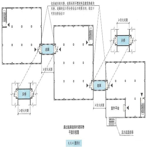 但是,《建規(guī)》并沒有明確“防止火災(zāi)在兩座建筑間蔓延的措施”具體是什么措施,比如建筑通往連廊的門是否應(yīng)采用防火門等等。
