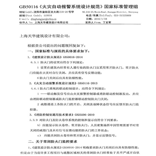 前些年也有一家設(shè)計(jì)單位發(fā)函給《火規(guī)》國家標(biāo)準(zhǔn)管理組,管理組回函如下: